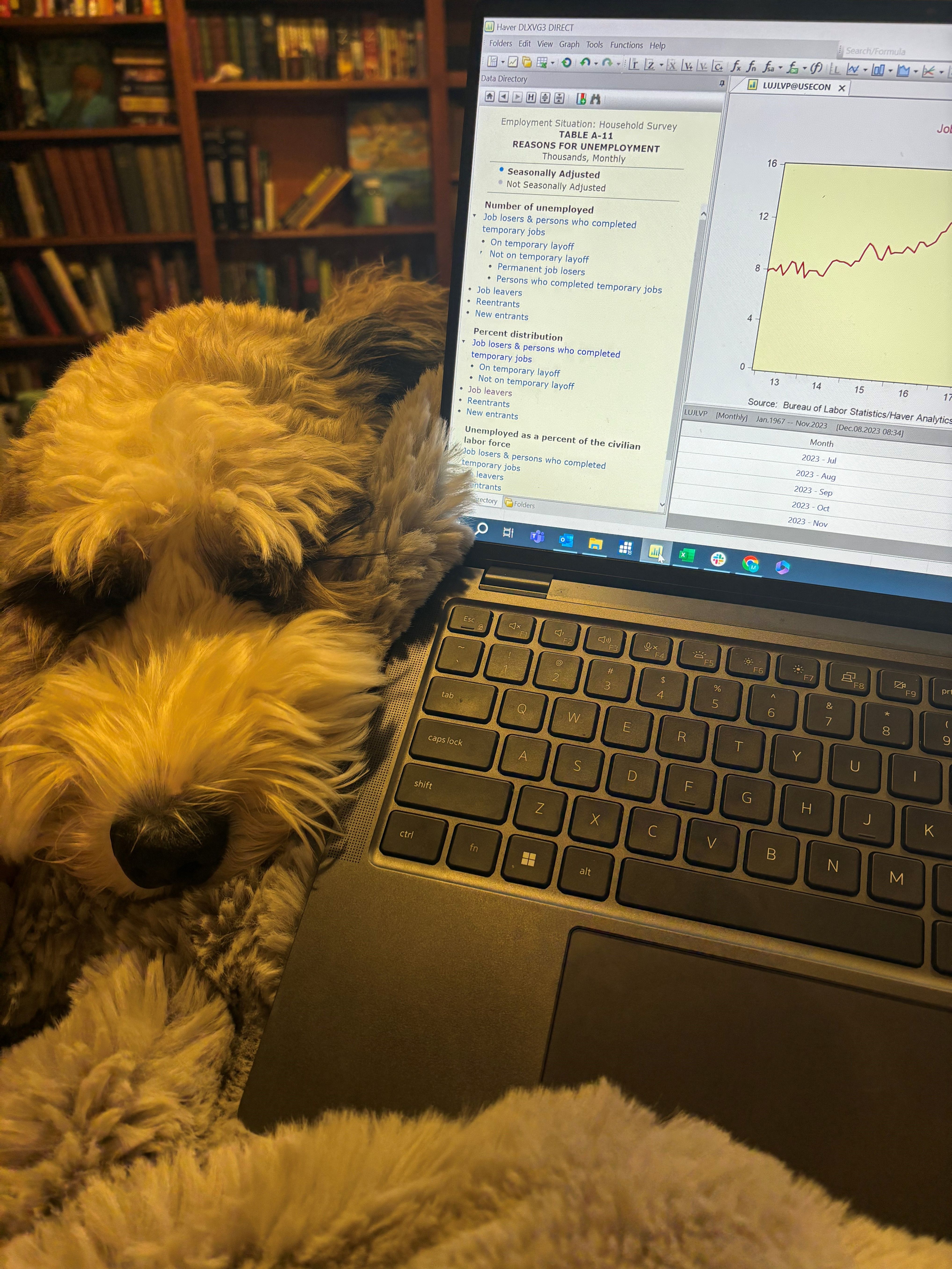 Cappy (Captain Barzilla Harding) belongs to the Executive Director and tries to support humans doing things with economic data when they should be providing belly rubs.