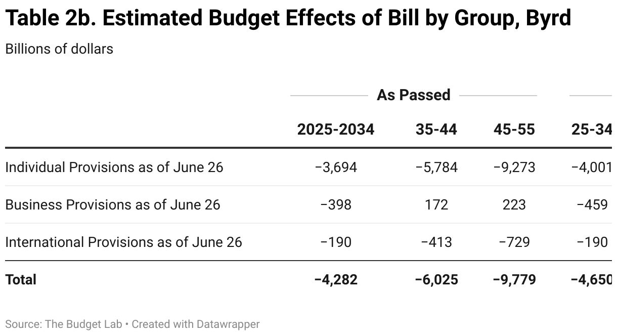 - If the Byrd violations hold, the cost over the 2025-2034 window is $4.3 trillion and over the 2025-2055 window is $20.1 trillion (1.18% of GDP).